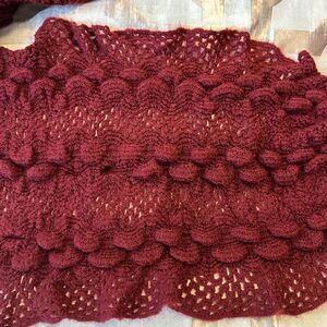 Infinity Scarf Red Knit 52” Ruffles Circle Loop Cowl Neck Cozy Warm Clothing