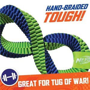 Give your energetic pal a durable toy optimized for extra-tough fetching, tugging, and roughhousing Braided Nylon Infinity Tuff Tug dog toy. Thanks to the unique infinity loop design, it's perfect for your dog to play tug of war with you or with other friendly pups! Featuring bright colors and a durable braided nylon that resists tears, this toy is built to withstand hours of strenuous chewing and pulling. When you want to add much-needed exercise to your dog's activity, use this toy at home or at the park.