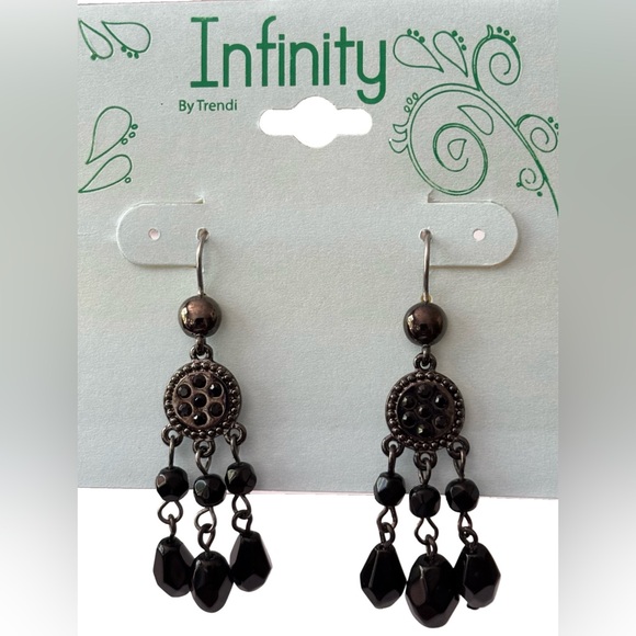 Infinity by Trendi Black Beaded Boho Dangle Earrings