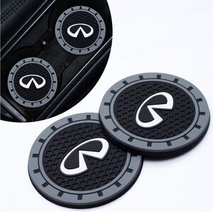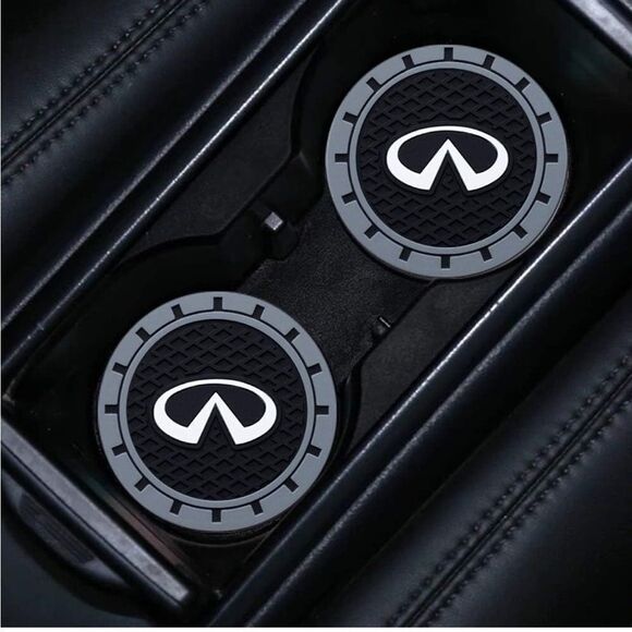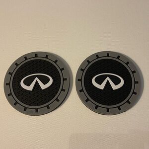 Infinity car cup Coasters in black and gray. New in Pack ◦ Set of 2 cup Coasters • 2.75” diameter & .2” thick • Silicone anti-slip - aftermarket • Professional pics for info only. These are new in pack as shown. • Shipped quickly, normally in a day • bundle and save See pictures for details and size. Smoke free and pet free shop Thanks for shopping in my closet