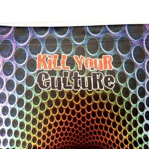 Infinity face mask. NOT MEDICAL GRADE. Polyester and elastin. Lightweight and breathable. Stays cool. Seamless. Says ' kill your culture ' colorful design. Measurements in pics. Crazy almost optical illusion design. My home is smoke and pet friendly. Please take note before purchasing anything in my closet. #facemask #crazy #hippie #stoner #psychedelic #funny