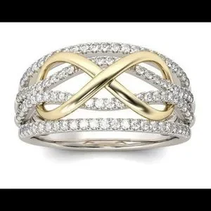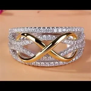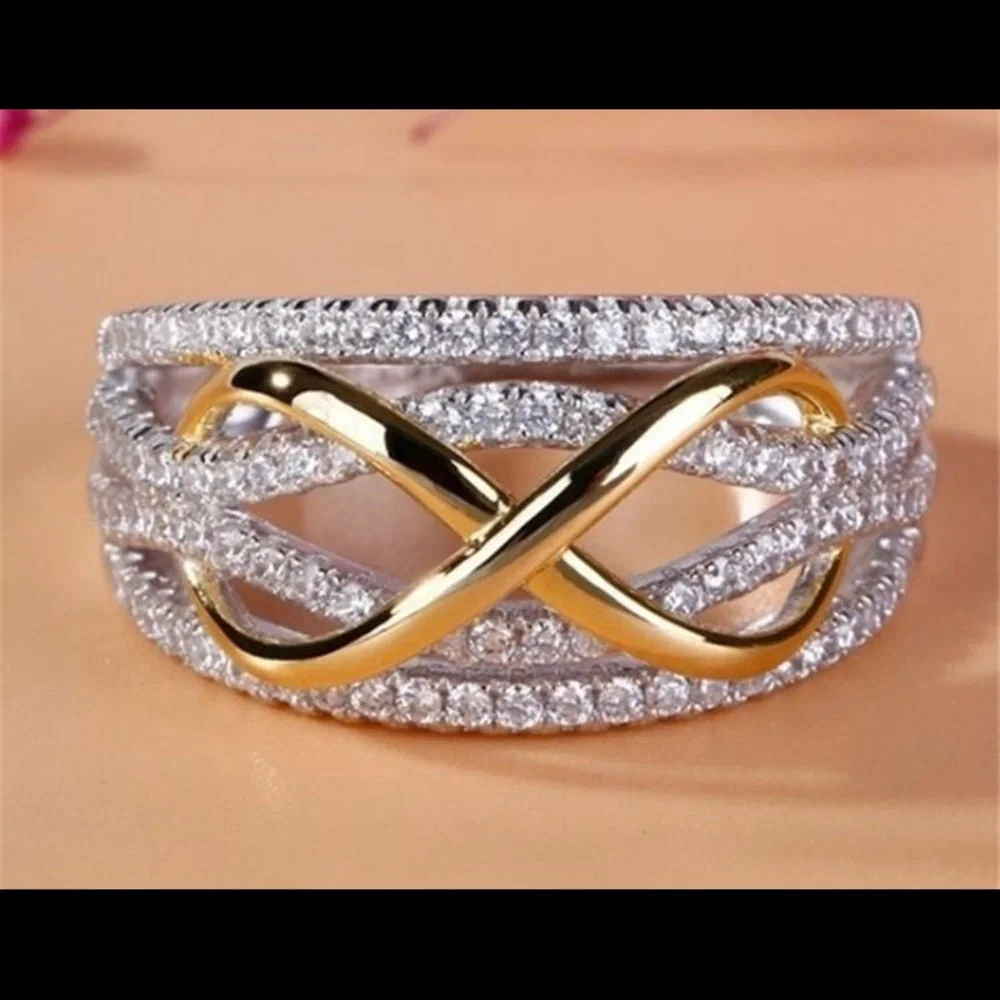 Fashion infinity love ring Two toned gold silver Cubic zircon crystals