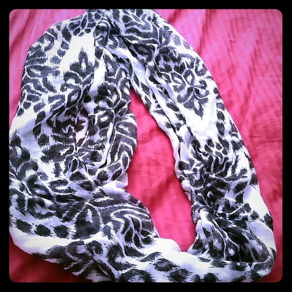 Black and white design infinity scarf. Never worn. Brand new without tags. Recieved as a gift and not my style.