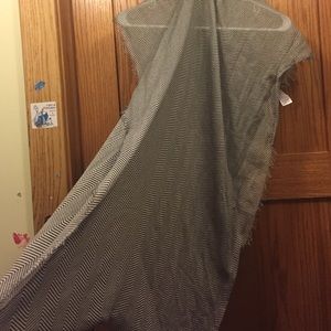 Black and gray infinity scarf, when unrolled around 2ft by 4ft. Has a chevron pattern. Great condition.