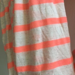 Heathered cream with neon coral stripes