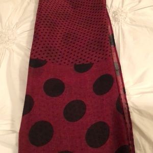Light weight infinity scarf in great condition. Maroon color with big and small black polka dots
