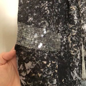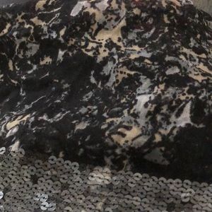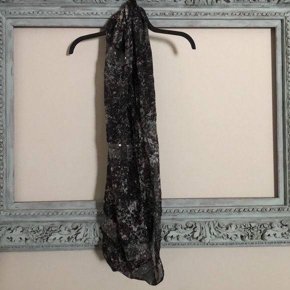 Sequined infinity scarf. Shades of black gray and tan.