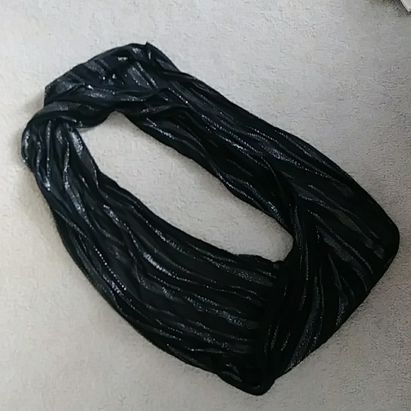 Lightweight black & silver infinity scarf, worn twice