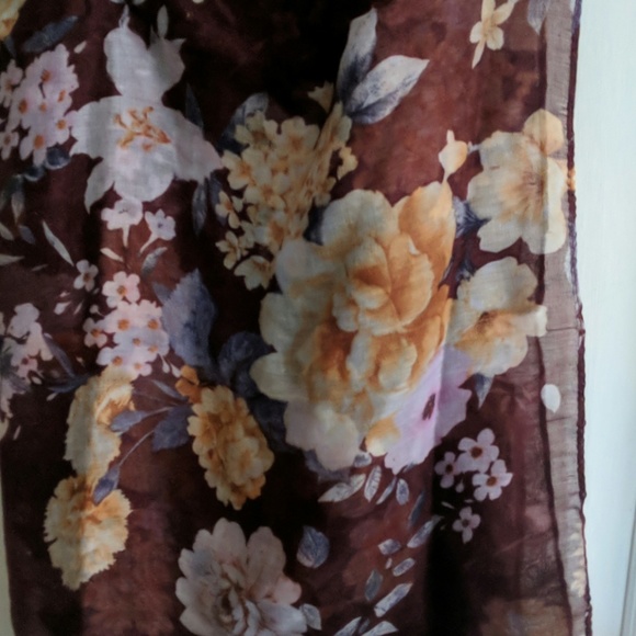 Light weight infinity scarf, never been worn, plum back ground with a floral design.