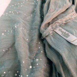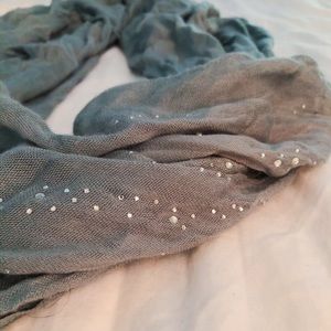 Teal infinity scarf. Rhinestones on one side an on half of scarf. 100% viscose.