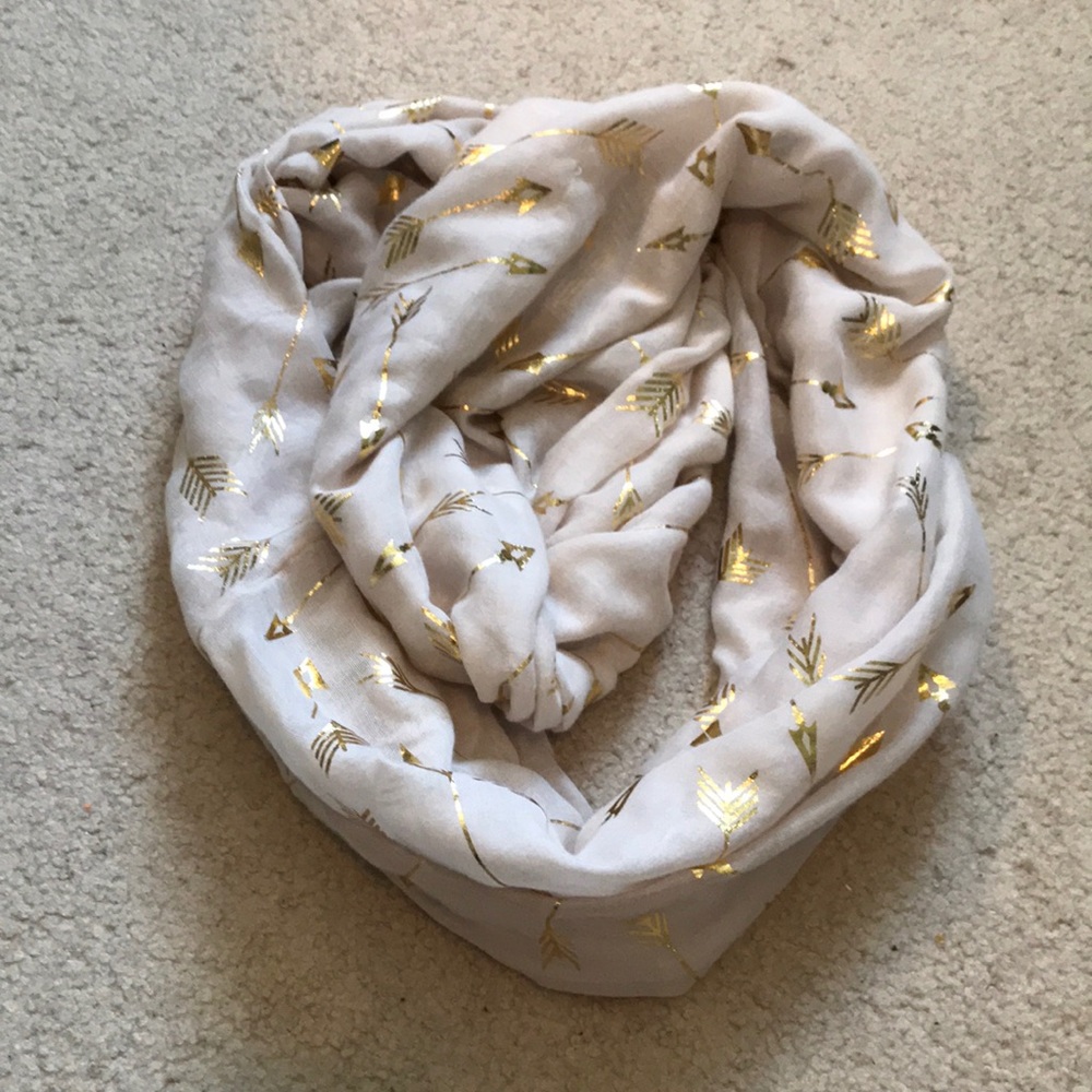 Infinity scarf with gold arrows. Pretty thick and long