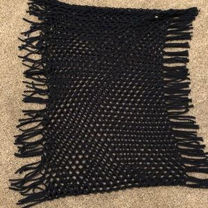 Versatile and soft. About 2 feet wide and 3 1/2 feet long. Navy blue color.
