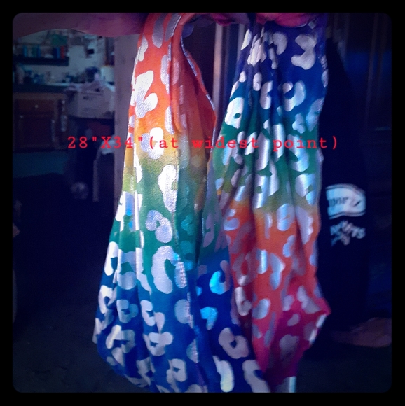 Rainbow iridescent & paw print infinity scarf with velcro closer.