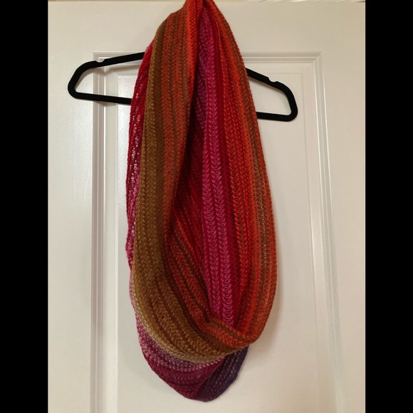 Cute but warm infinity scarf in vibrant colors. Looka great with jeans jacket or winter coat.