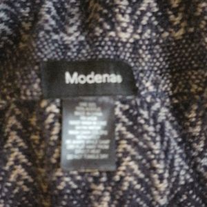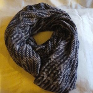 Navy and gray infinity scarf. Very sofy. A snag or two, but not at all noticeable when worn. Pet friendly home.