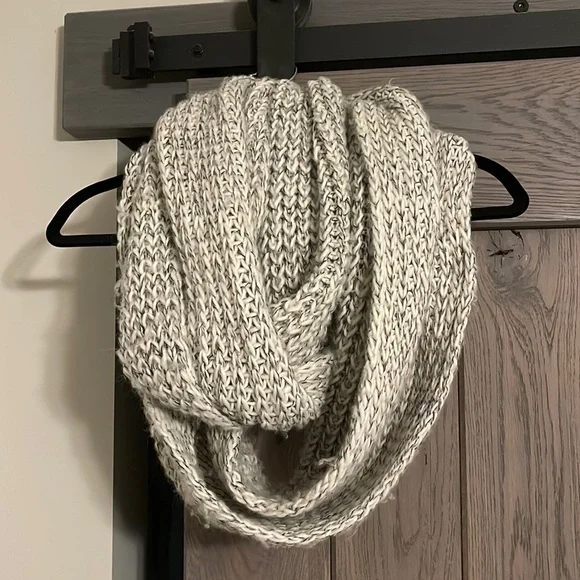 White & black thick infinity scarf. Very warm! Has some pilling throughout