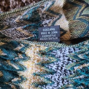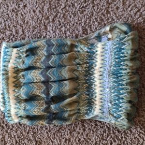 pretty infinity scarf, multicolored, mainly green tones, goes with almost anything.