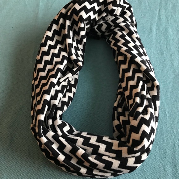 Two scarves. Black and white chevron pattern. Sweater-like material in a oatmeal color.
