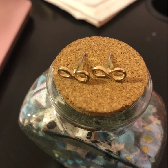 Infinity sign stud earring. Not authentic gold. Will be sterilized. includes push backs.