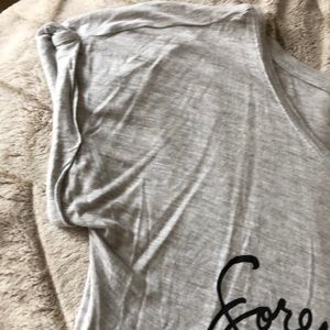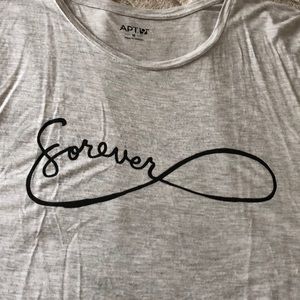 Gray top with infinity design. Worn 2x and washed gentle/hang dry! EXCELLENT CONDITION! Very minor piling. Very soft material. Cute with some capris and sandals.