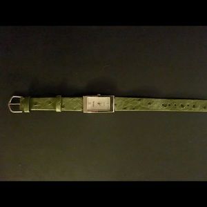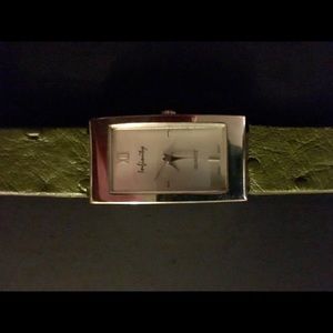 Infinity watch with leather, alligator style band. Worn once, needs battery. Small scratch on face but you can't see it unless the light hits it just right. I love this watch but I never wear it.