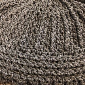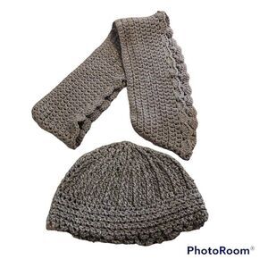 Infinity Scarf and beanie Handmade Hand Crochet Knit gray scalloped Excellent preowned condition.