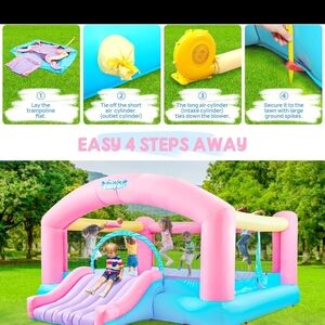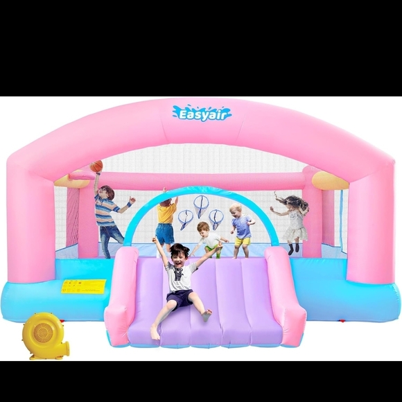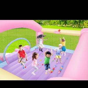 The Inflatable Bounce House offers endless fun for kids with its vibrant pink and blue design. Perfect for outdoor play, this bounce house is a great way to keep children active and entertained.Indoor or outdoor. Blower included! Shipping will be decently high on this item, as it is heavy!