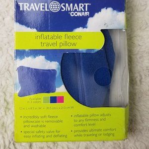 Travel Smart by Conair - Inflatable Fleece Travel Pillow - Blue