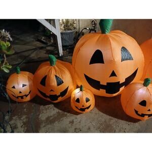 Made from durable polyester, nylon, and fabric materials, this airblown inflatable is powered by a corded power source and features a cooling fan, lighted LED lights, and a plug-in electric design. The round shaped family of friendly pumpkins in a traditional style pumpkin patch design makes it a great addition to any Halloween decorations. Clean with a damp cloth for easy care.