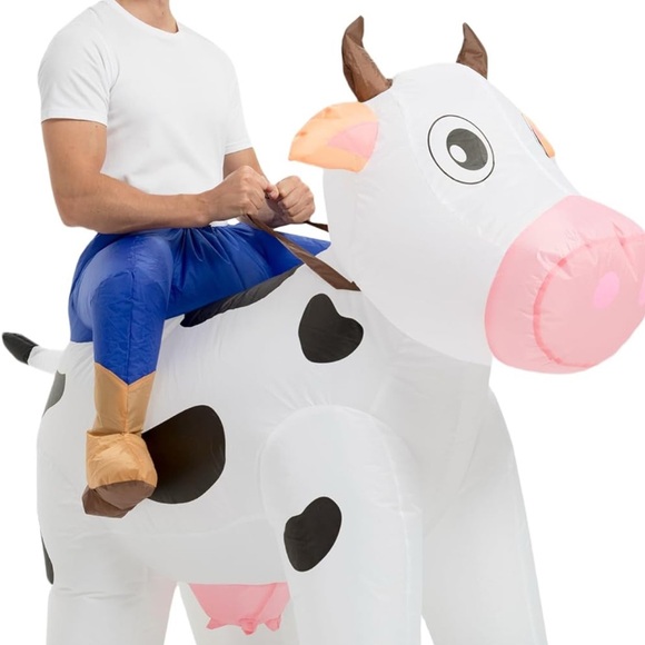 【Product Components】Package contains Instruction Sheet, Inflatable Cow Suit and Air Pump. Air Pump Requires Portable Power Bank or 4 AA Batteries. (Batteries Not Included)
