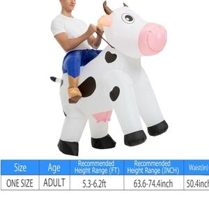 【Product Size】Deluxe Version of Inflatable Cow Costume. Adult Size. One Size Fits for 5.3-6.2ft/63.6-74.4inch.