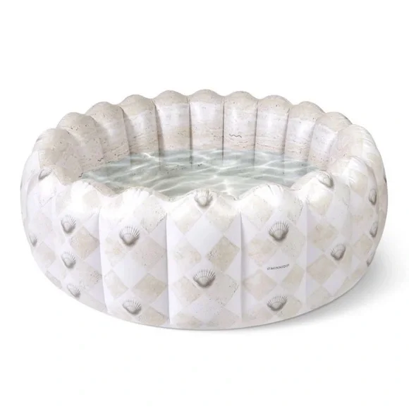 Enjoy a relaxing day in this stylish inflatable pool featuring a unique shell pattern. Perfect for adding a touch of elegance to your outdoor space.