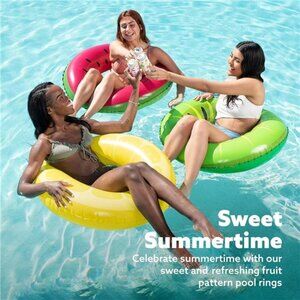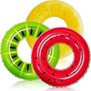 Inflatable Swim Tube Raft (3 pack) with Summer Fruits Painting, Pool Toys