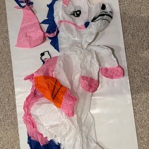 Make Halloween magical with this inflatable unicorn ride-on costume! Designed for kids, this fun and eye-catching costume gives the illusion of riding a unicorn. Worn only twice and in great shape, it comes from a smoke-free home and is ready to bring joy to its next little rider. Requires 4 AA batteries (not included) to power the fan that keeps the costume inflated.