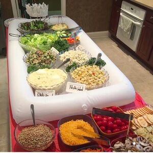 Enjoy your pool time with this inflatable white pool bar. Perfect for holding drinks and snacks while you relax or food for an outdoor picnic.