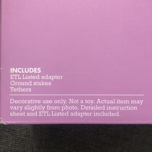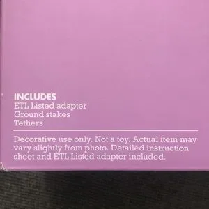 4ft H Includes: ETL listed adapter, ground stakes, tethers Decorative use only