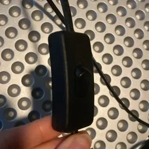 Has small hook so it can be mounted to wall. Simple one click on/off switch