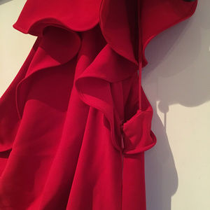 The neckline and ruffled detail at one shoulder make this dress flashy and perfect for dancing the night away or dinner at a beach resort.