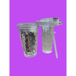 Friends TV Show merchandise. Infusion drinkware. Ross Rachel Joey Phoebe cup. Plastic tumbler with lid. 16 oz infusion cup. TV show themed drinkware.
