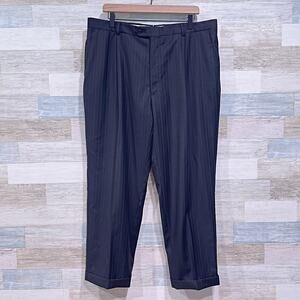 Ing Loro Piana Italy Wool Striped Suit Black Stripe Daniel Cremieux Mens 44S 37W