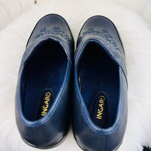 Ingaro Katy 2 Blue Leather Floral Embroidered Slip on Comfort Clogs Nursing 10M