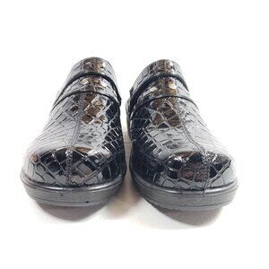 Ingaro Womens Size 8.5 Black Croc-Embossed Slip-On Clog Faux Leather