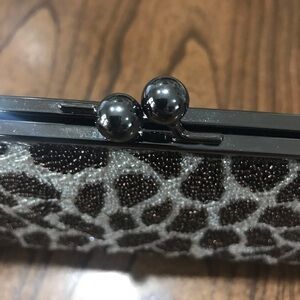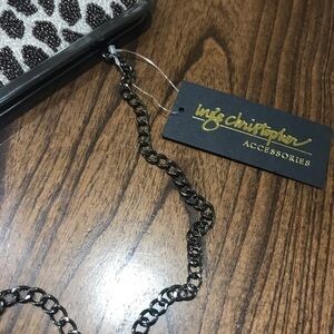 NWT Inge Christopher Purse Clutch Beaded Giraffe Print Metal Strap Handbag