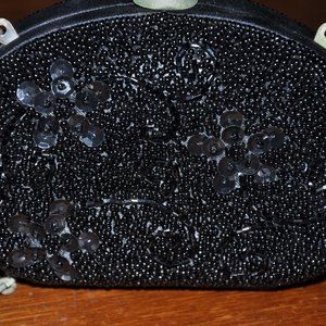 Inge Christopher Floral Seed Bead Evening Purse Black & Silver Clasp Closure