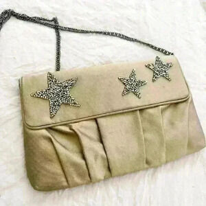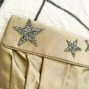 Inge Christopher Rhinestone Star Glam Glitz Purse Shoulder Cross Body Chain Tan