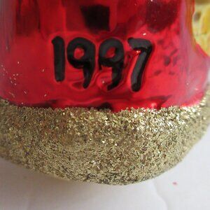 Yuletide Visitor 4.5" tall. Released in 1997. Yuletide Visitor is the 1997 Special Event Piece. Limited Edition of 15,000 pieces, signed by the artist, E. M. Merck. Each ornament is mouth blown and hand painted in the Inge-Glas workshop in Neustadt, Germany; a business owned and operated by the Müller-Blech family for 14 generations, since 1596. Dating back to the 1850's the Inge-Glas collection includes more than 6000 antique molds, many of which are re-introduced each year. Preserving the 410 year old family tradition of glassblowing, every ornament is handcrafted in limited quantities. Each ornament from 1987 forward, carries the 5 - Point Star Crown of Inge-Glas, your guarantee that you possess a mouth blown, hand painted German Christmas ornament. Old World Christmas of Spokane Washington was the exclusive distributor for Inge Glas ornaments until 2000.