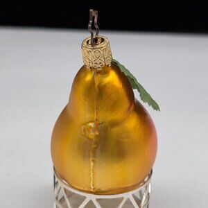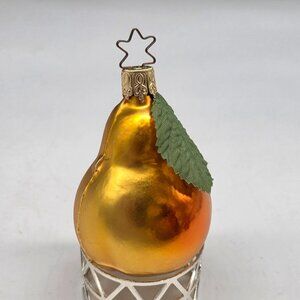 Inge Glas Pear German Glass Christmas Ornament Orange 3"