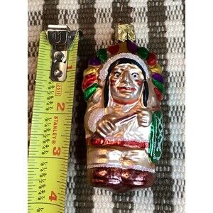 Inge Glass Blown Ornament Indian Chief Christmas Tree Decor Made in Germany