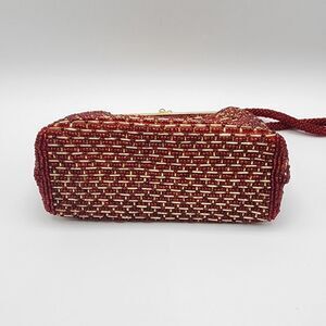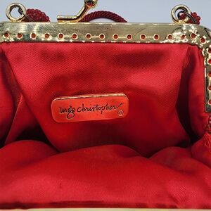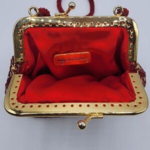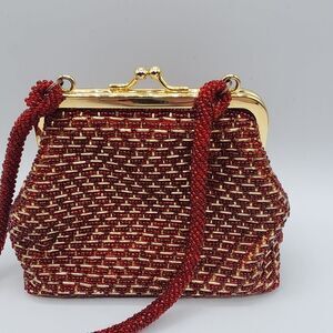 Inge Christopher red & gold beaded snap top coin style bag 26" beaded strap 5"x2.5"x4.5" in great condition