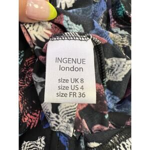Ingenue London Dress Stretchy Long Sleeve Ruched Detail Black Owl Print Sz 4